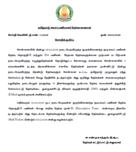 :ரத்து செய்யப்பட்ட தேர்வுக்கான புதிய தேதி இன்னும் இரண்டு வாரங்களில் அதிகாரப்பூர்வமாக அறிவிக்கப்படும் என்று தமிழ்நாடு தேர்வாணையம் தெரிவித்துள்ளது.