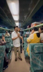 ​முதல்வர் இந்த நிகழ்ச்சிக்குச் செல்ல வழக்கமான வாகனங்களுக்குப் பதிலாக, சென்னை சென்ட்ரல் ரயில் நிலையத்திலிருந்து பிருந்தாவன் எக்ஸ்பிரஸ் ரயிலில் பயணம் செய்து ஜோலார்பேட்டை சென்றடைந்தார். ரயில் பயணத்தின் போது பொதுமக்களுடன் கலந்துரையாடி, அவர்களின் கோரிக்கைகளைக் கேட்டறிந்தது அனைவரது கவனத்தையும் ஈர்த்தது.