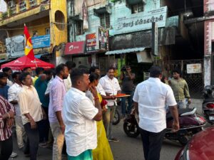 விசில் சின்னம் ஒதுக்கப்பட்டதை அடுத்து, தமிழகம் முழுவதும் தமிழக வெற்றி கழகத்தை சேர்ந்த தொண்டர்களும் பல்வேறு இடங்களில் பொதுமக்களுக்கு இனிப்புகளை வழங்கி வெடித்துக் கொண்டாடினர்.