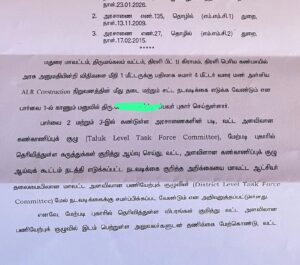 கடந்த ஜனவரி 20-ஆம் தேதி, சமூக ஆர்வலர்கள் மேற்கொண்ட கள ஆய்வில் அதிர வைக்கும் உண்மைகள் வெளிவந்தன. அரசு விதிமுறைப்படி 1 மீட்டர் மட்டுமே மண் எடுக்க அனுமதி உள்ள நிலையில், ALR Construction என்ற தனியார் நிறுவனம் சுமார் 4 மீட்டர் ஆழத்திற்கும் மேலாக ராட்சதப் பள்ளங்களை உருவாக்கியுள்ளது. இது குறித்த புகார்கள் GPS புகைப்பட ஆதாரங்களுடன் மாவட்ட கனிமவளத்துறையிடம் ஒப்படைக்கப்பட்டும், இதுவரை எந்த நடவடிக்கையும் எடுக்கப்படாதது ஏன் என்ற கேள்வி எழுந்துள்ளது.