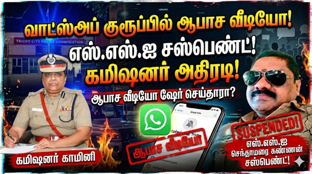 Video வாட்ஸ்அப் குரூப்பில் ஆபாச வீடியோ! வசமாக சிக்கிய போலீஸ் SSI! கமிஷனர் காமினியின் அதிரடி ஆக்ஷன்!” Jio News Tamil April 28, 2026 1 min read Facebook WhatsApp Twitter Tags: Breaking News CommissionerKamini JioNewsTamil PoliceSuspension TamilNaduPolice Tamilnews TamilViral TrichyNews TrichyPolice WhatsAppScandal அதிரடி காவல்துறை சஸ்பெண்ட் திருச்சி Post navigation Previous பெங்களூருவில் அடுக்குமாடி குடியிருப்பில் நிர்வாணமாக கிடந்த இளம்பெண்ணின் சடலம்…Next அழகே பொறாமைப்படும் பேரழகு… அழகிப்போட்டியில் அசத்திய திருநங்கைகள்… Leave a Reply Cancel replyYour email address will not be published. Required fields are marked *Comment * Name * Email * Website More Stories 1 min read Video மதுரை: மணல் கொள்ளையைத் தட்டிக்கேட்ட இளைஞருக்குப் பட்டாக்கத்தி வெட்டு! அதிரவைக்கும் வீடியோ! April 27, 2026 Jio News Tamil 1 min read Video 25 வருஷத்துக்கு அப்புறம் அந்த ஸ்கூல் பெஞ்ச் நண்பர்கள் மதுரையில் நடந்த நெகிழ்ச்சியான சந்திப்பு! April 27, 2026 Jio News Tamil 1 min read Video மதுரை மீனாட்சி அலங்காரத்தில் அசத்திய சிறுமி! | April 27, 2026 Jio News Tamil