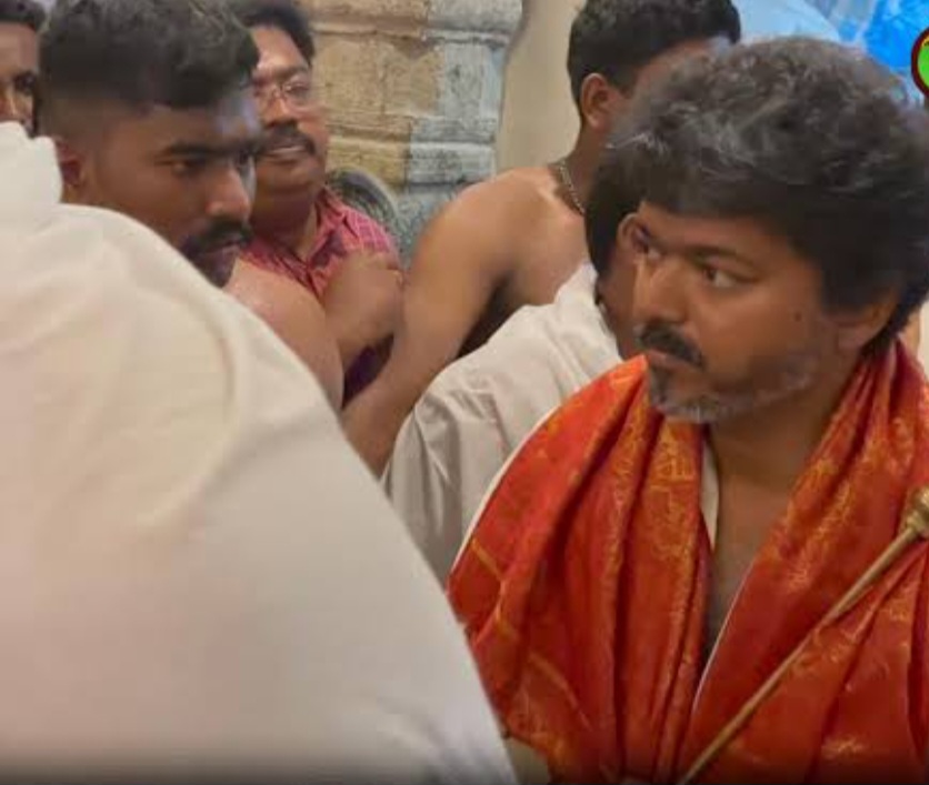 தரிசனத்தை முடித்துக் கொண்டு வெளியே வந்த விஜய், அங்கிருந்த ரசிகர்களையும் தொண்டர்களையும் நோக்கி கை அசைத்து விடைபெற்றார்.